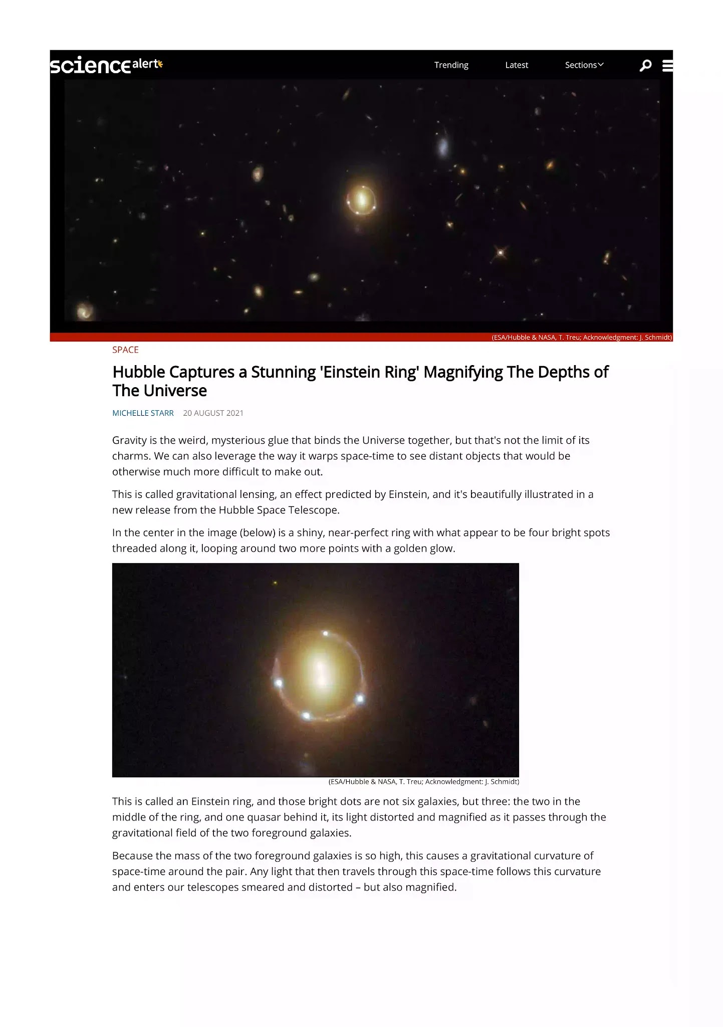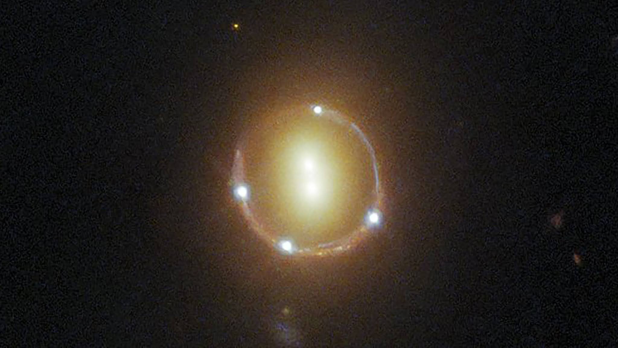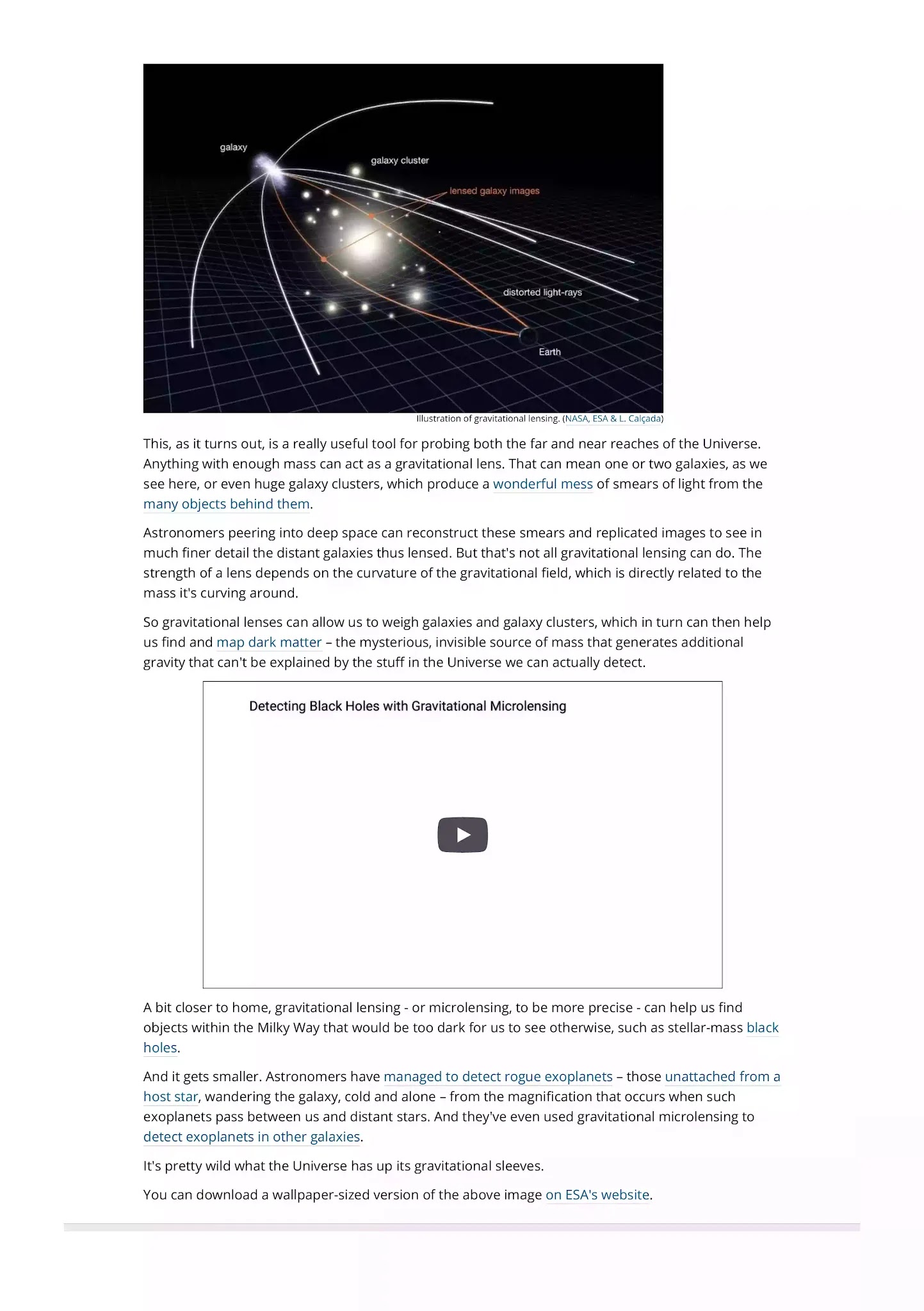 This animation illustrates the concept of gravitational microlensing with a black hole. When the black hole appears to pass nearly in front of a background star, the light rays of the source star become bent due to the warped space-time around the foreground black hole. It becomes a virtual magnifying glass, amplifying the brightness of the distant background star. Unlike when a star or planet is the lensing object, black holes warp space-time so much that it noticeably alters the distant star’s apparent location in the sky.
