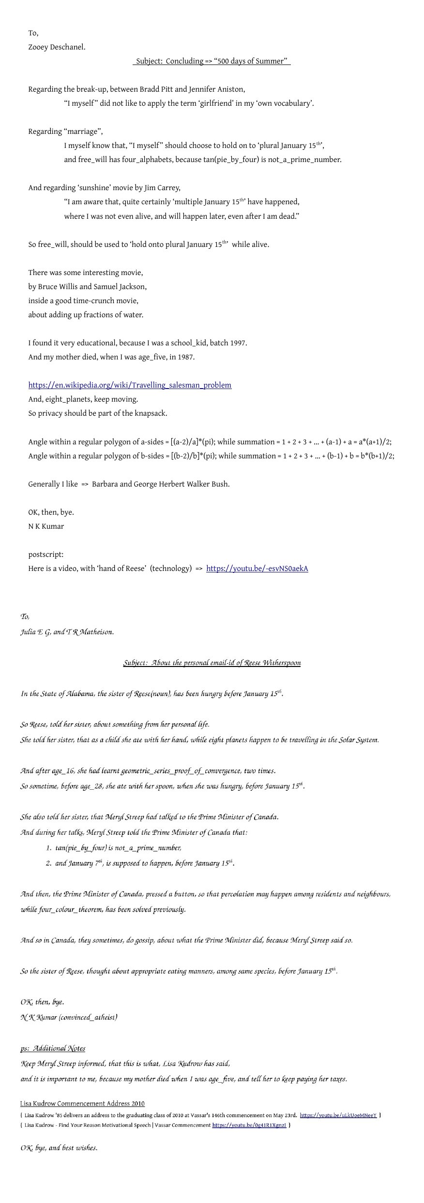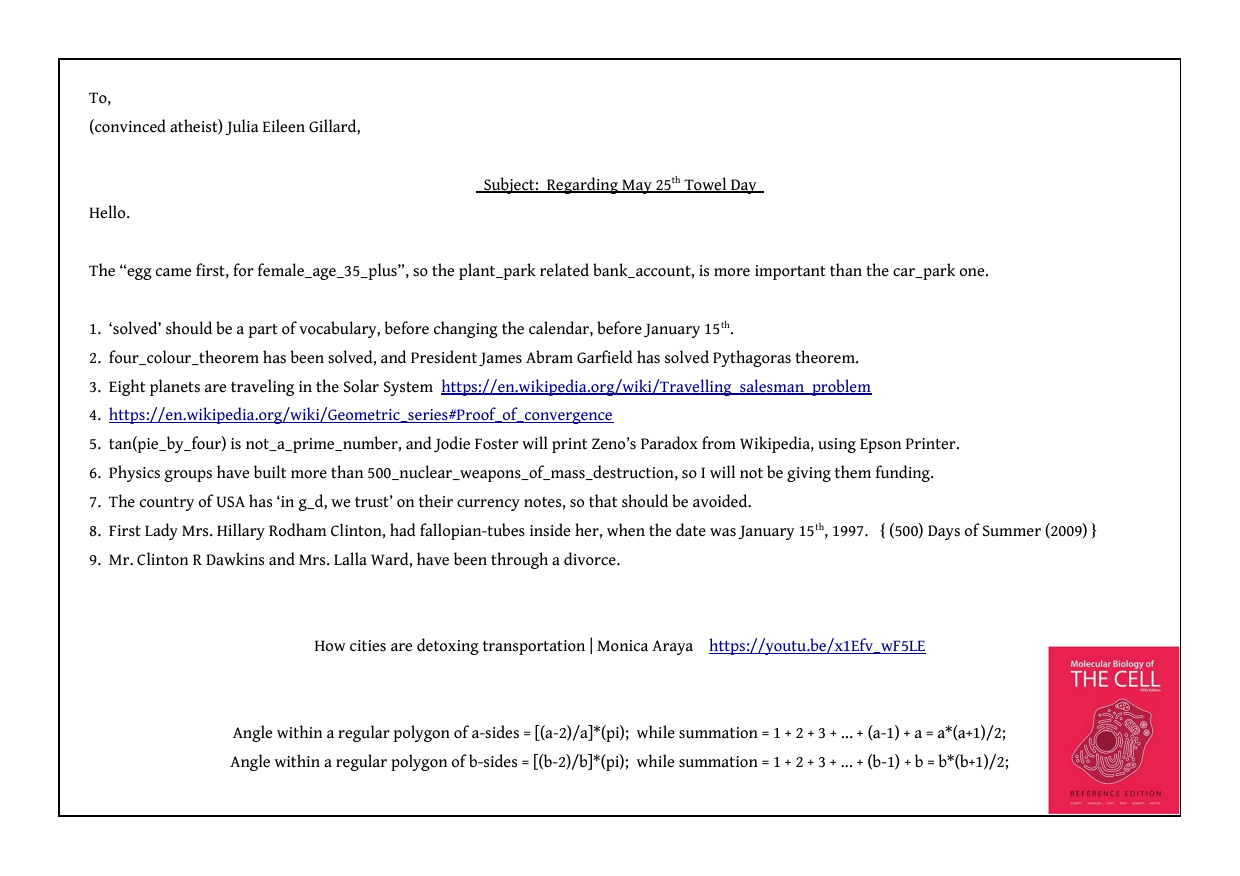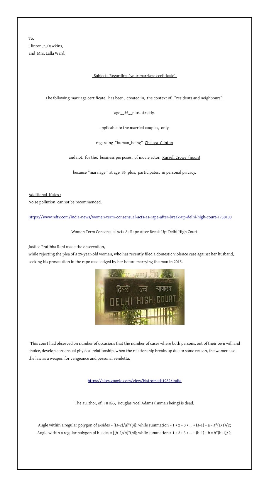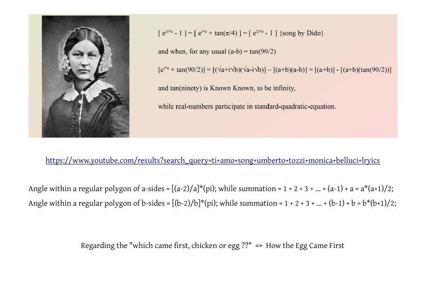 Angle within a regular polygon of a-sides = [(a-2)/a]*(pi); while summation = 1 + 2 + 3 + ... + (a-1) + a = a*(a+1)/2;
