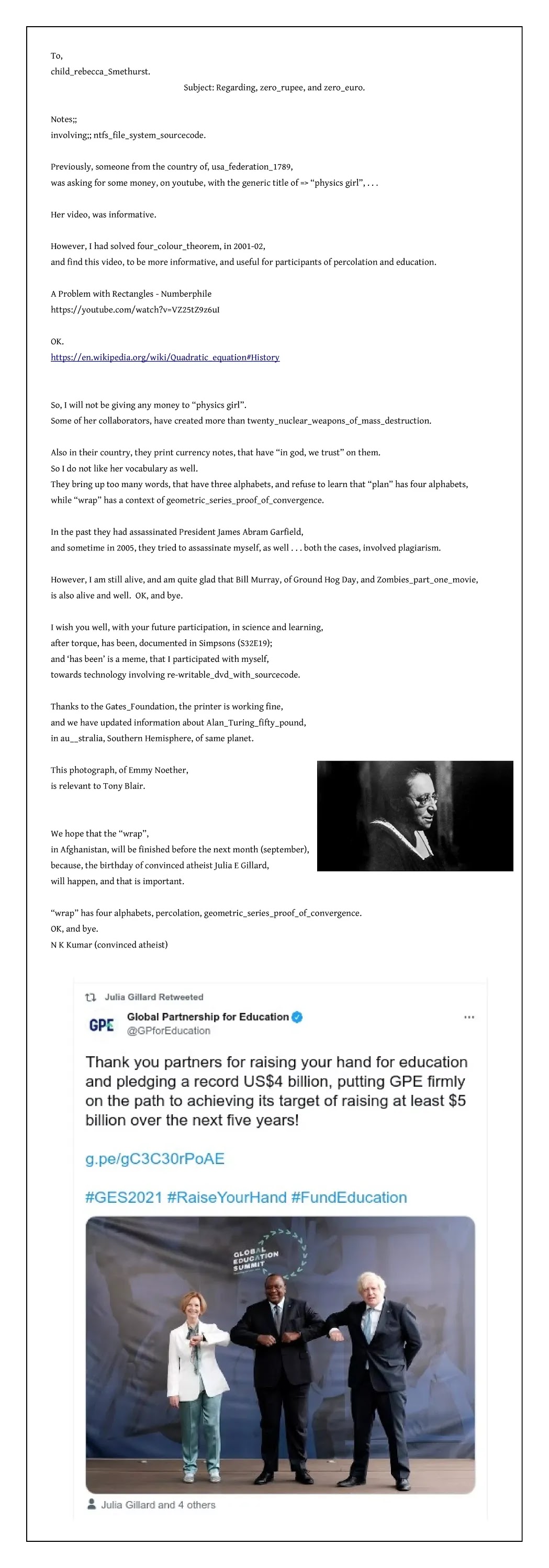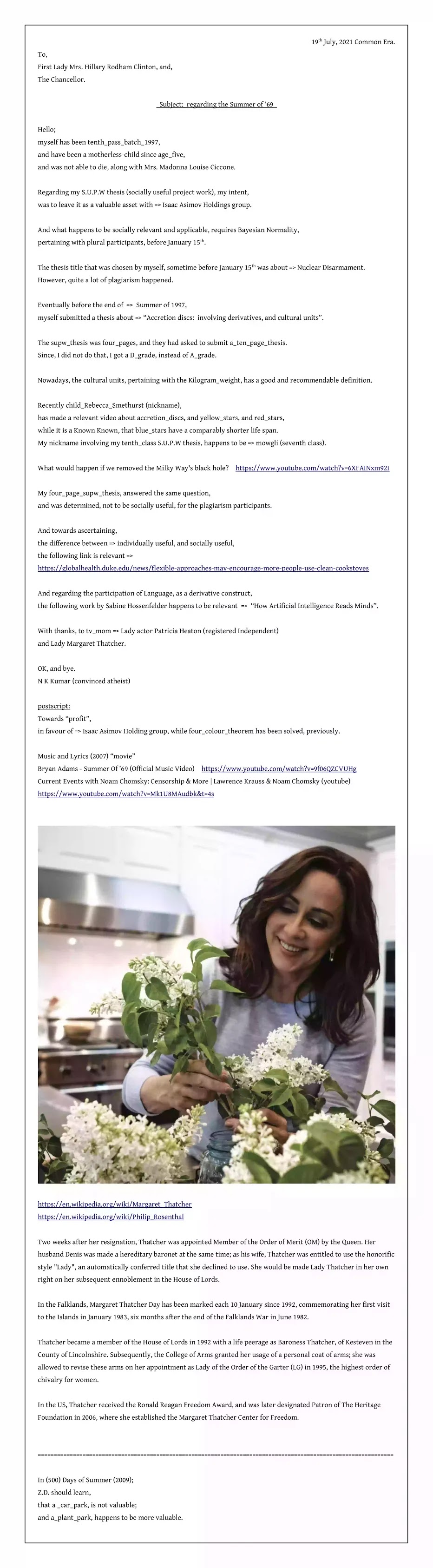 A couple of letters, involving . . . final version, of my S. U. P. W. thesis