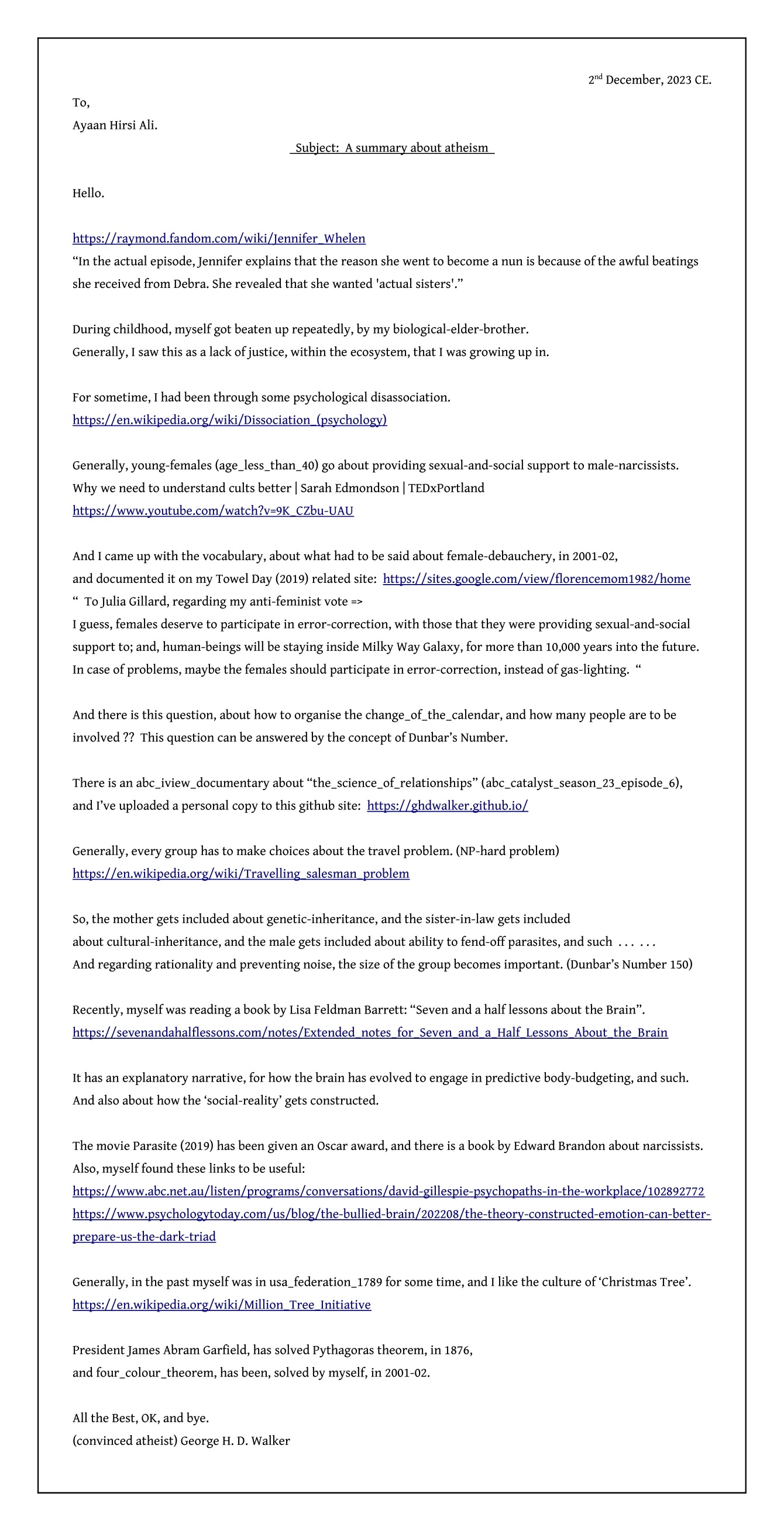 convinced atheist G H D Walker