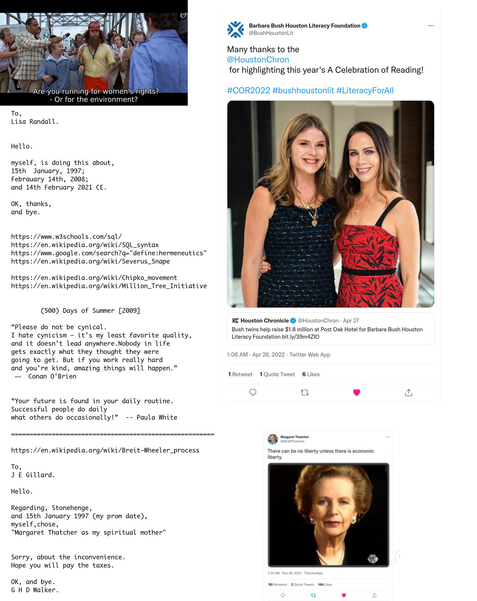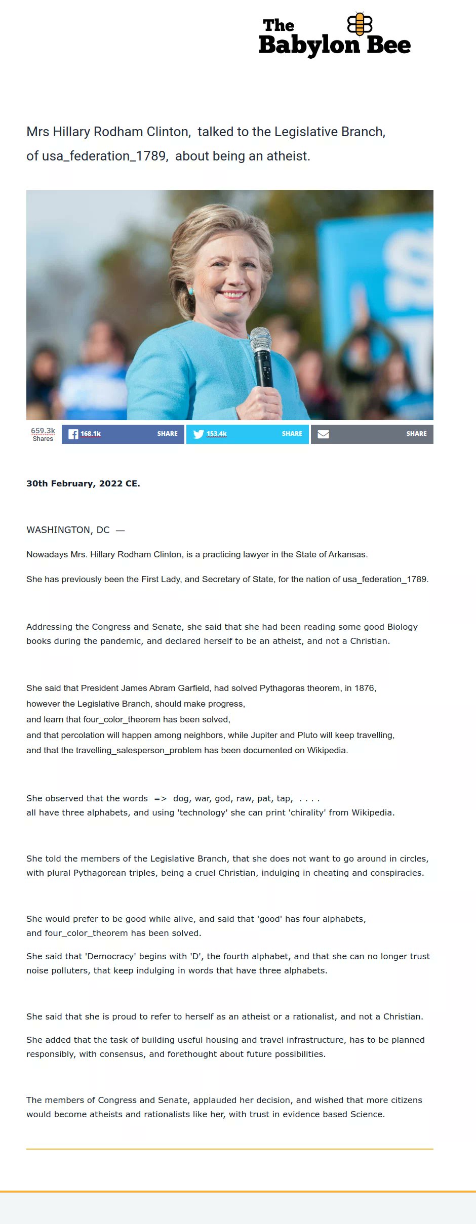 and my female benchmate did gossip about Mrs. Hillary, and found that I share my birthday with George Washington.