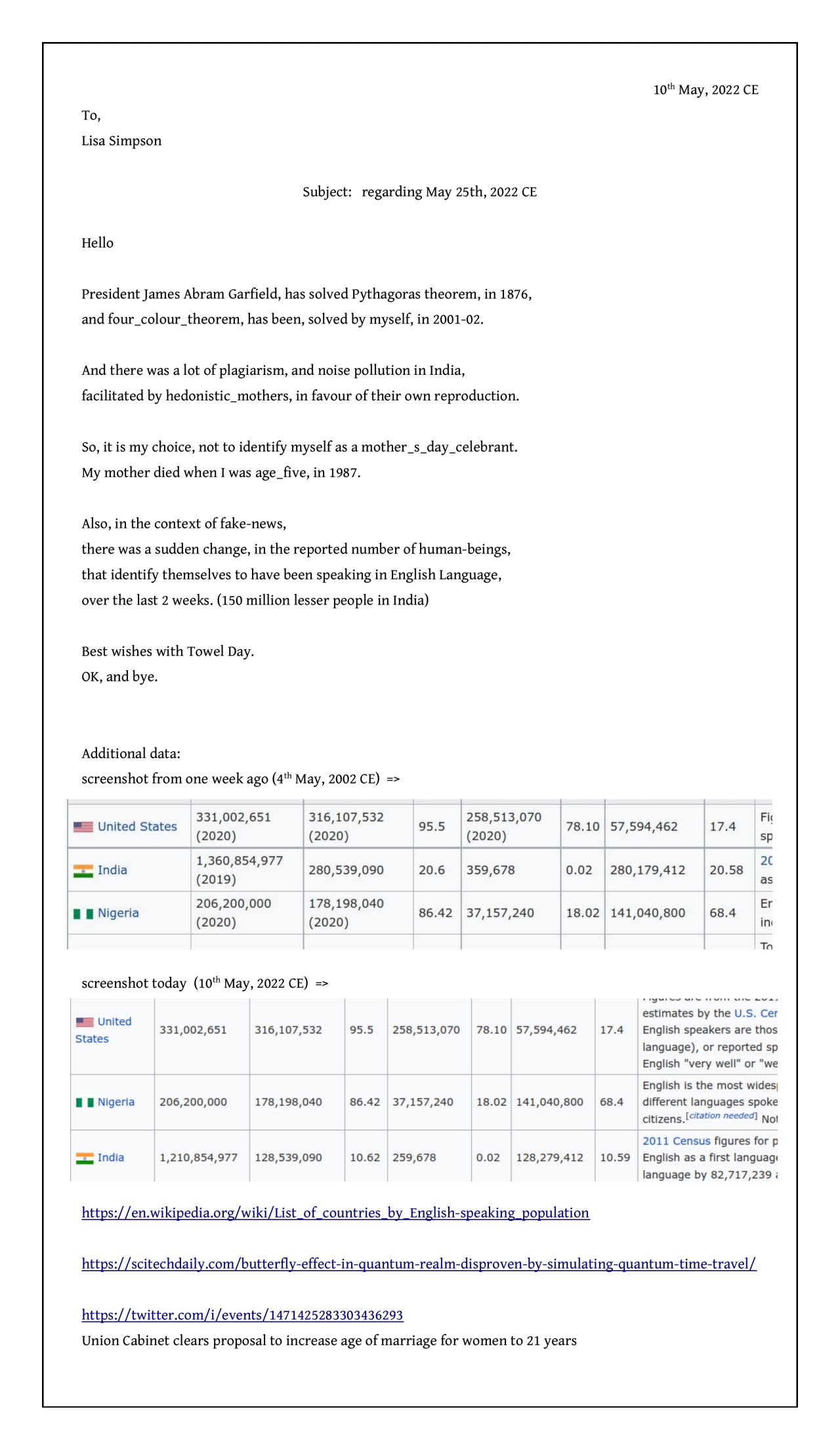 President James Abram Garfield, has solved Pythagoras theorem, in 1876, and four_colour_theorem, has been, solved by myself, in 2001-02.