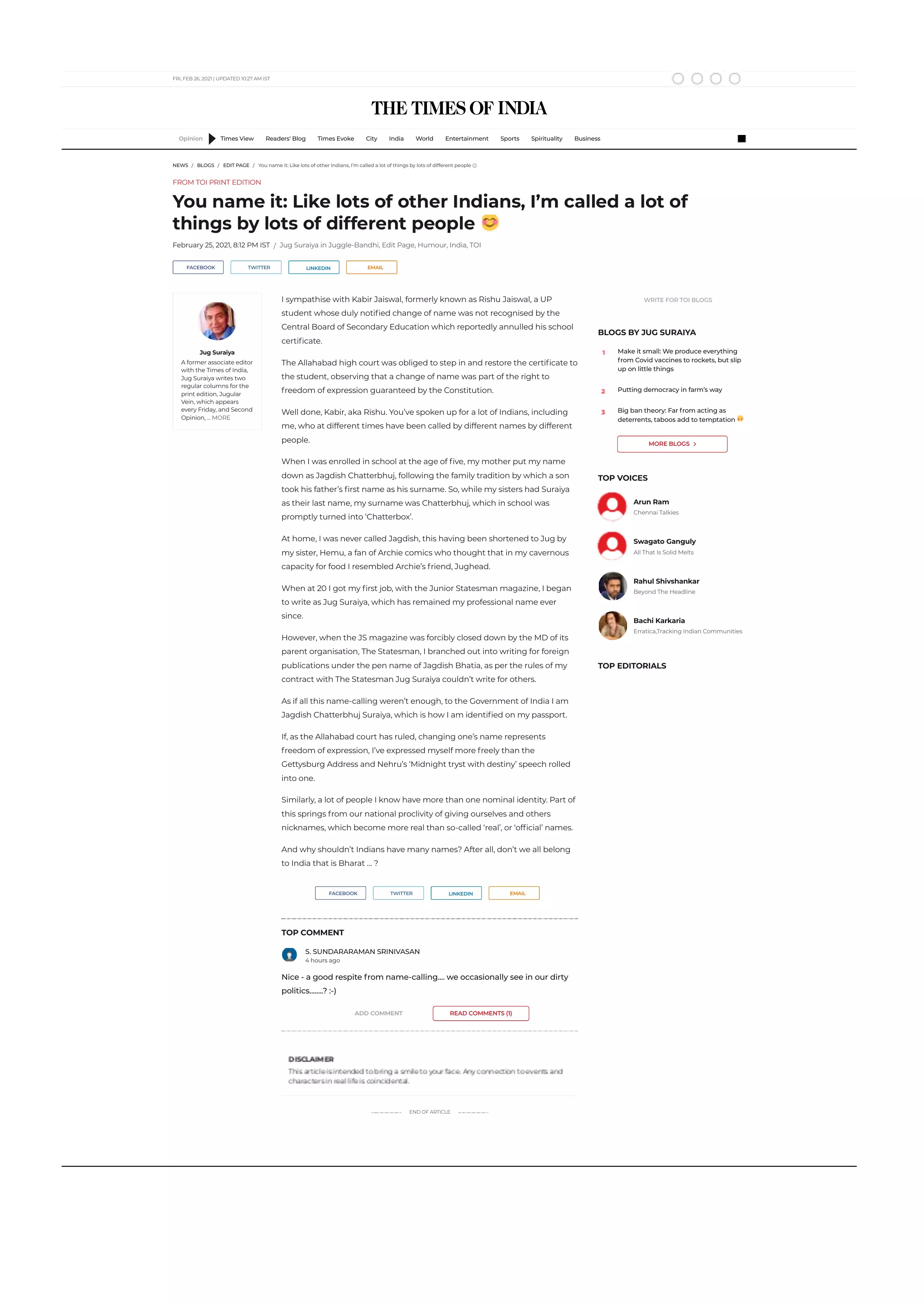 Well, changing one's own noun, can be multi-faceted, . . . . .